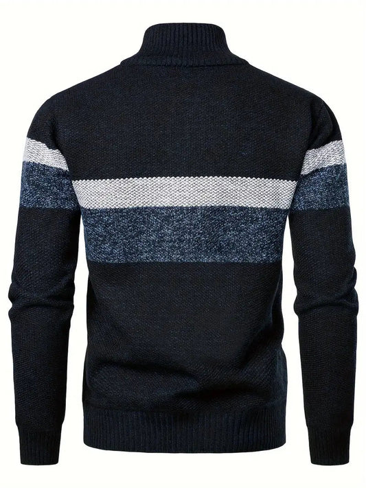 Elegant Marinblå Halvdragkedja Tröja För Herr | Perfekt för Höst/Vinter