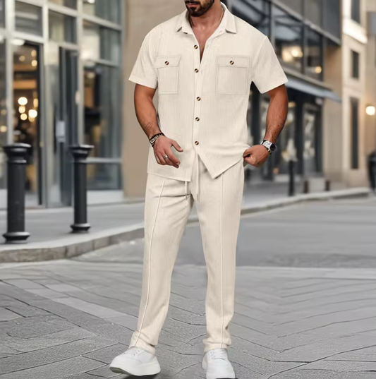 Elegant Sommarset för Män – Ribbat Kortärmat Skjortset