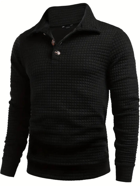 Elegant Vaffelmönstrad Tröja med Hög Krage för Herr | Perfekt för Höst/Vinter