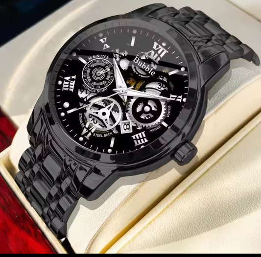 Exklusiv Herrklocka med Mekanisk Känsla – Guld/Silver & Svart