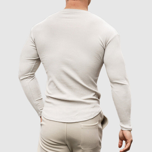 Henley Skjorta i Bomstickad struktur-Linblandning med Bandkrage