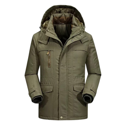 Herr fleecejacka med avtagbar huva. Tjock, varm vinterparkas, streetwear & vindjacka
