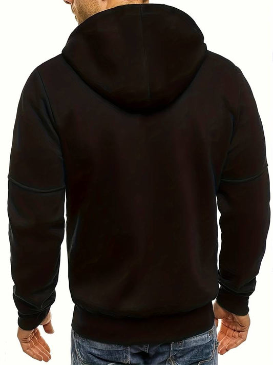Herr Fleece Hoodie Jacka - Mjuk Värmande - Hellång Dragkedja - Huva & Ärmsficka