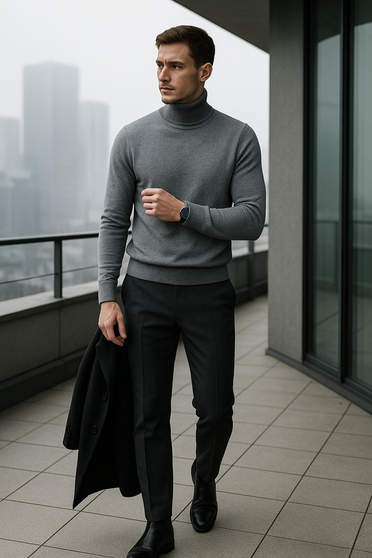 Herr Tröja Hög Krage Ribbad Mjuk Blandning