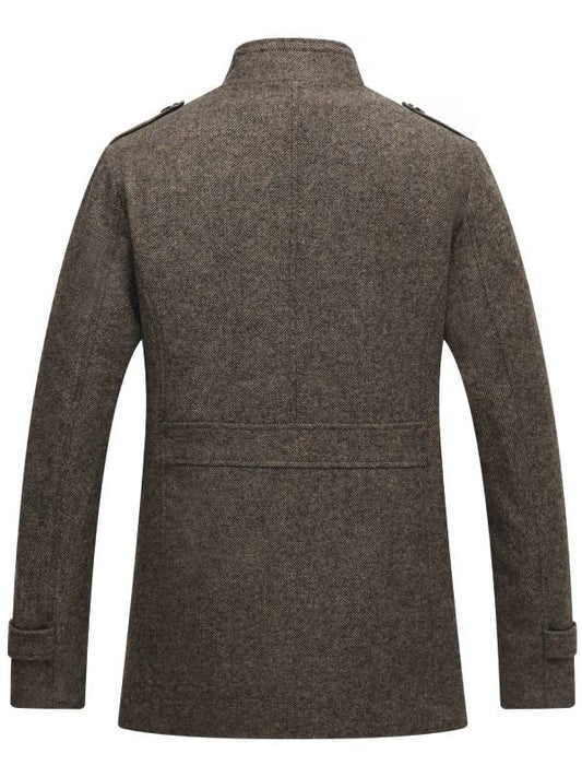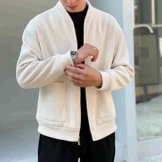 Herrjacka med Dragkedja – Ull – Normal Passform – Ribbad Krage och Muddar – Höftlängd