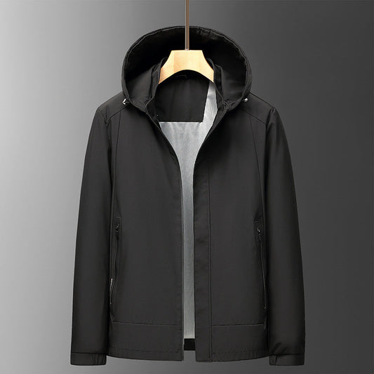 Herrjacka med huva – Avslappnad skräddad passform – Vind- och vattenavvisande – Hel dragkedja med stormklaff