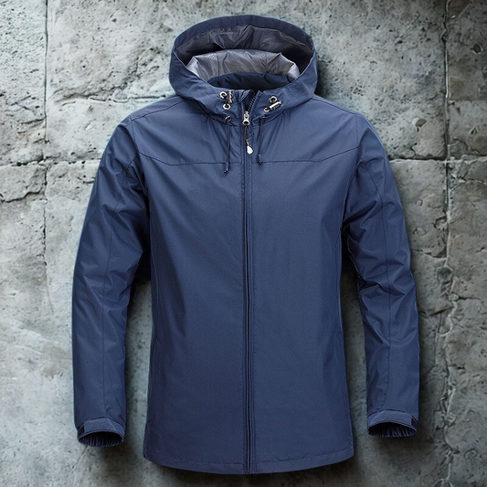 Herrjacka med huva – Ripstop tyg – Justerbara muddar – Tvåvägsdragkedja – Vind- och vattenavvisande