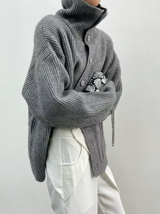 Herrjacka – Oversize Passform – Ribbstickad – Hög Krage – Knäppning Fram