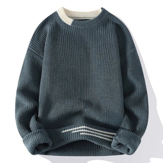 Avslappnad Tröja Med Kontrastkrage Och Randig Kant För Herr | Perfekt för Höst/Vinter