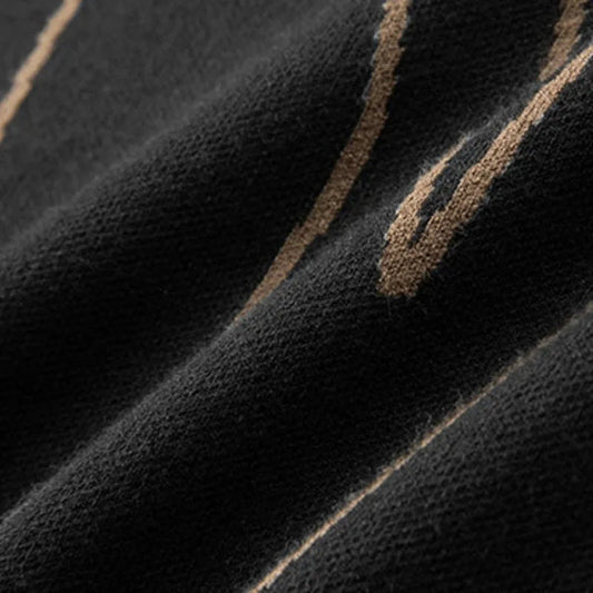 Avslappnad Svart Mönstrad Rundhalsad Tröja För Herr | Ideal för Höst/Vinter
