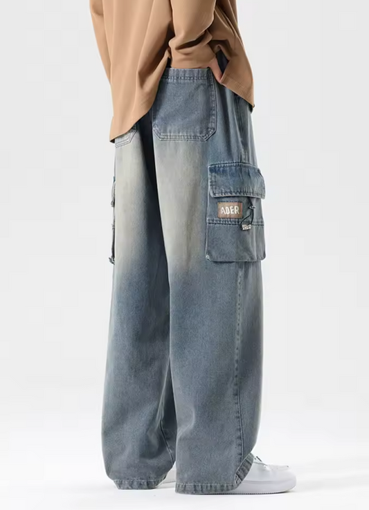 Baggy Cargobyxa i Denim – Avslappnad Streetwear med Funktionell Stil