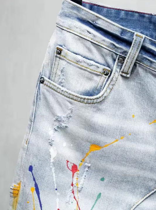 Jeansshorts med Färgskvätt – Urban Artwear