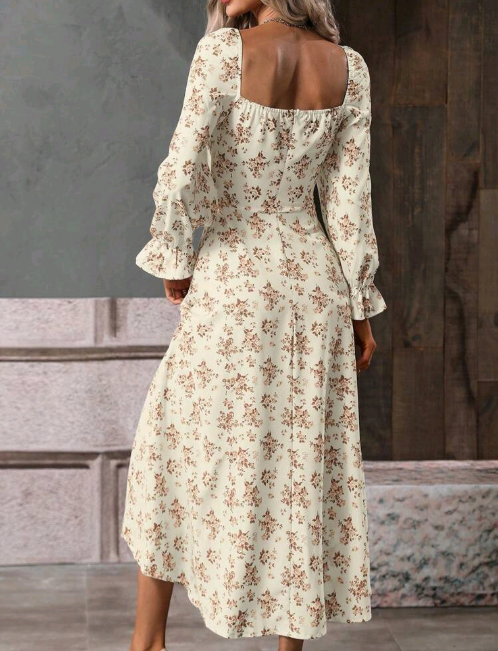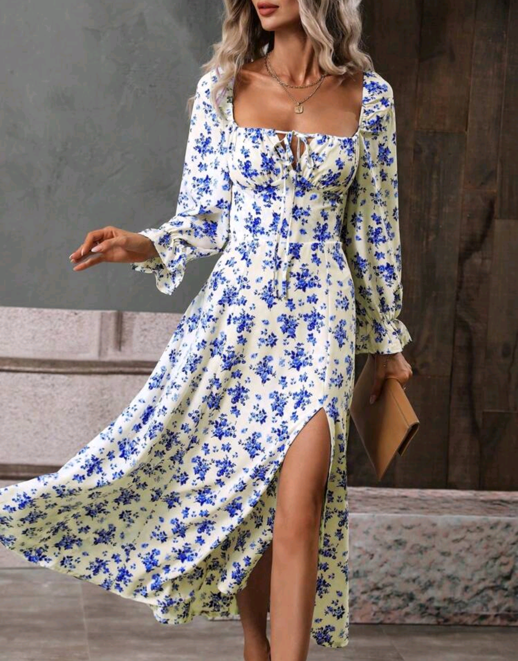 🌸 Blommig Midiklänning med Slits & Långa Ärmar – För dig som älskar elegans med en romantisk twist