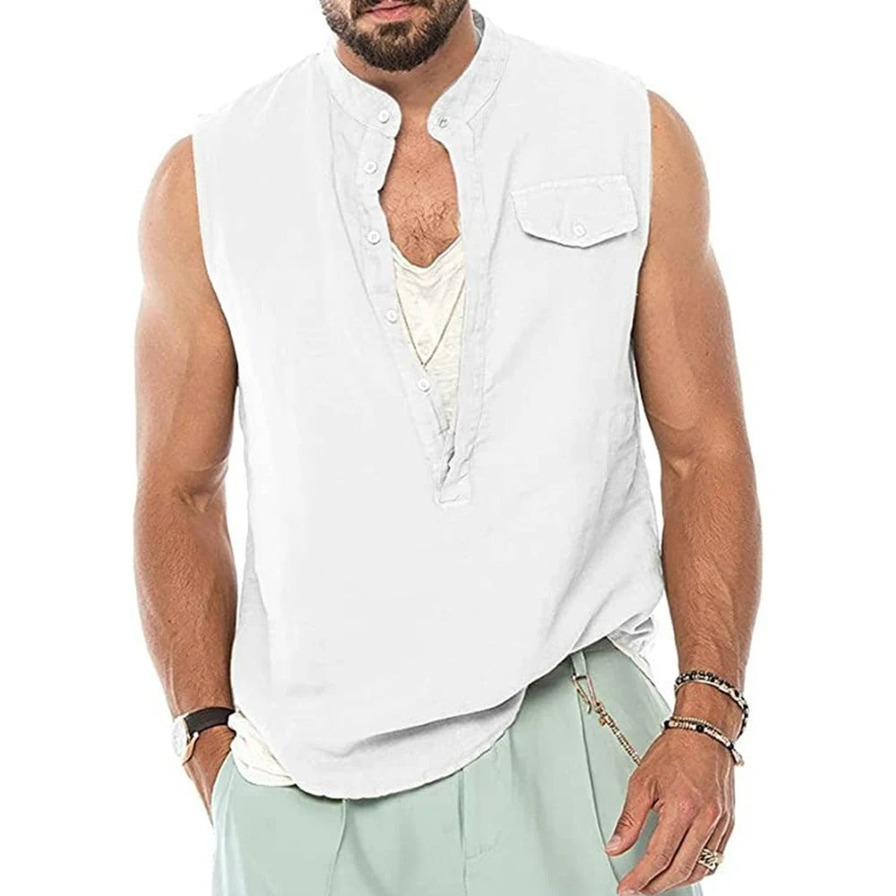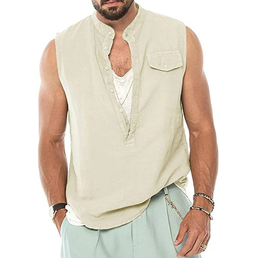 Paten linne ärmlöst sommarlinne för män kombinerar en avslappnad passform med en linneblandning som andas för att skapa ett svalt och stor alternativ i varmt väder. Den är designad för att ge ett modernt, minimalistiskt utseende och säkerställer rörelsefrihet med sin lätta, ärmlösa konstruktion.