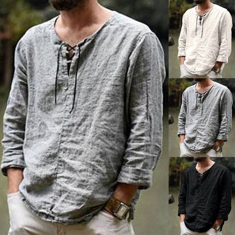 Axel | Klassisk linne Henley-skjorta med snörad halsringning för män