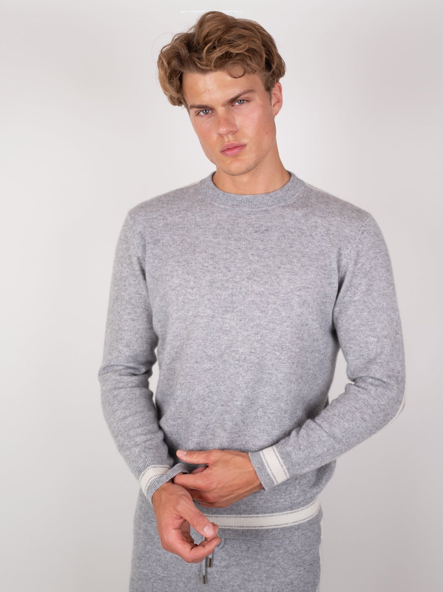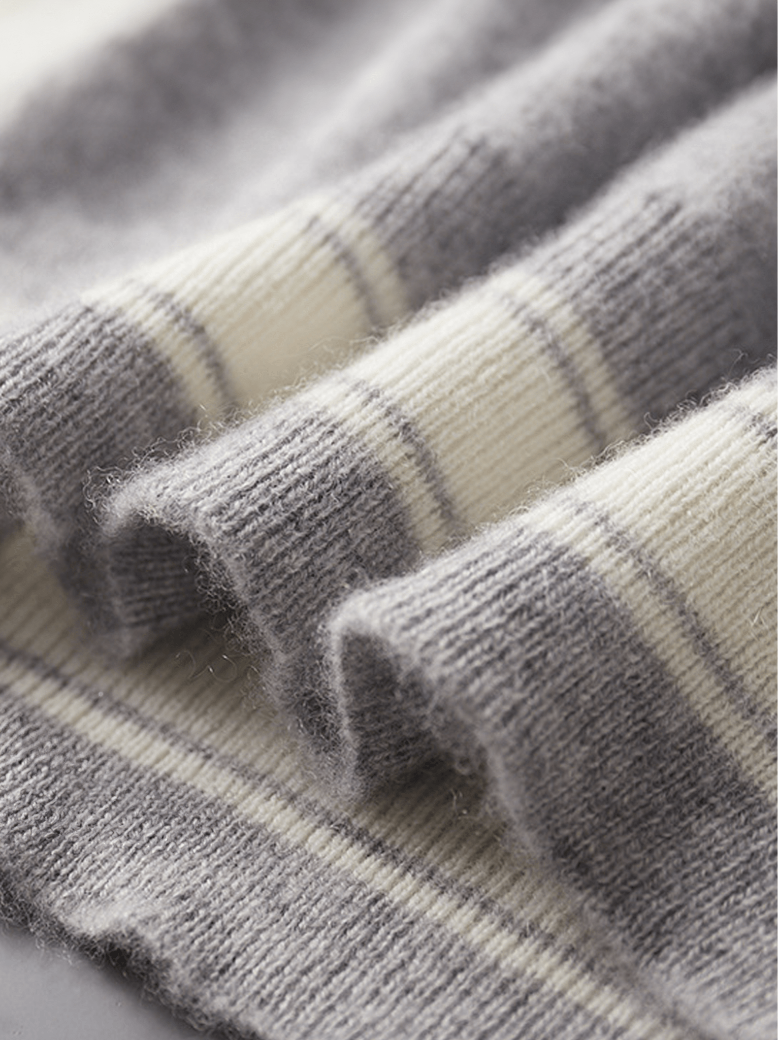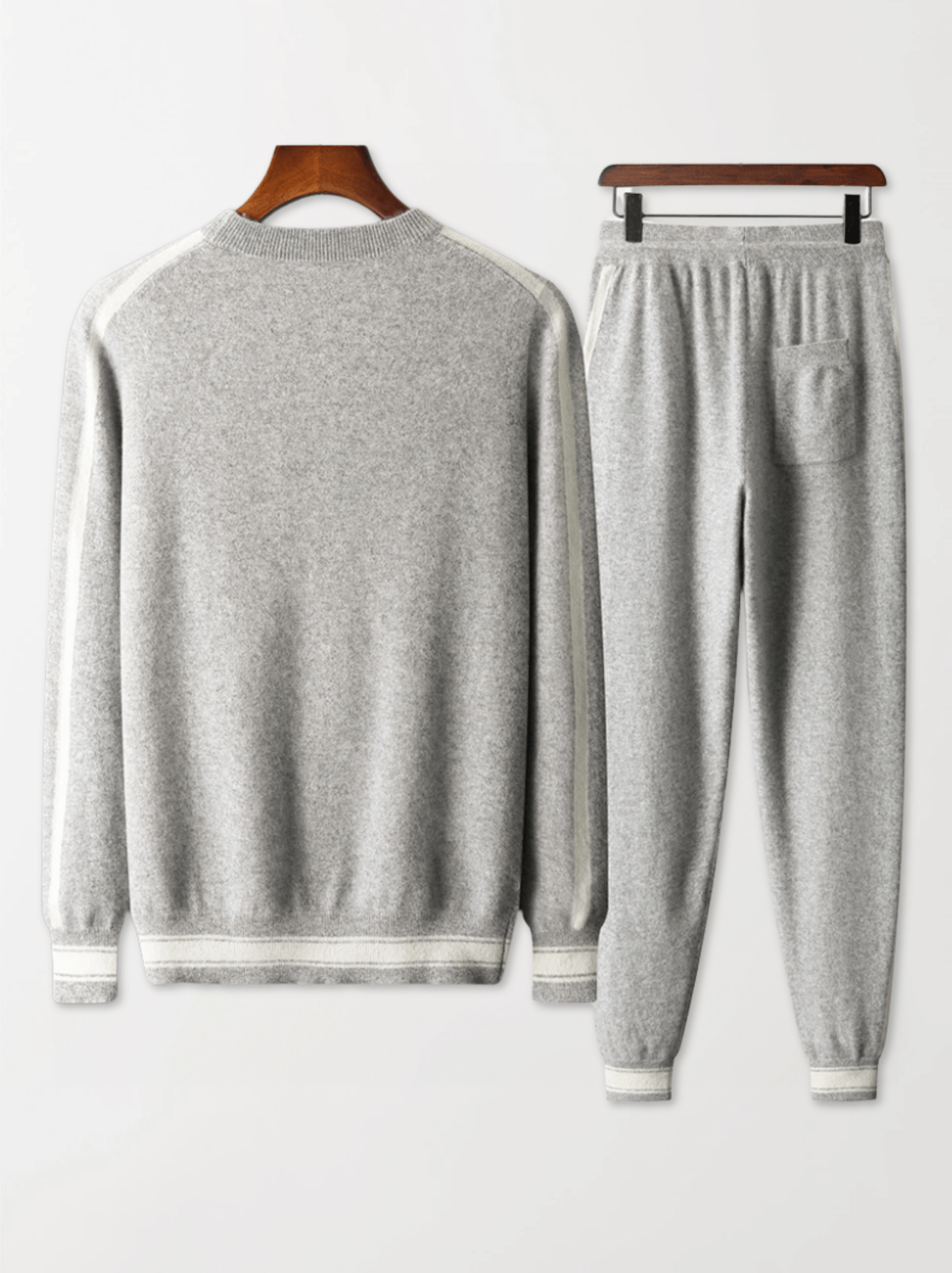 Wrap yourself in softness with the Cashmere Striped Trim Lounge Set, crafted from a premium blend for lightweight warmth. Ribbed striped accents add a subtle touch of contrast to this relaxed essential.