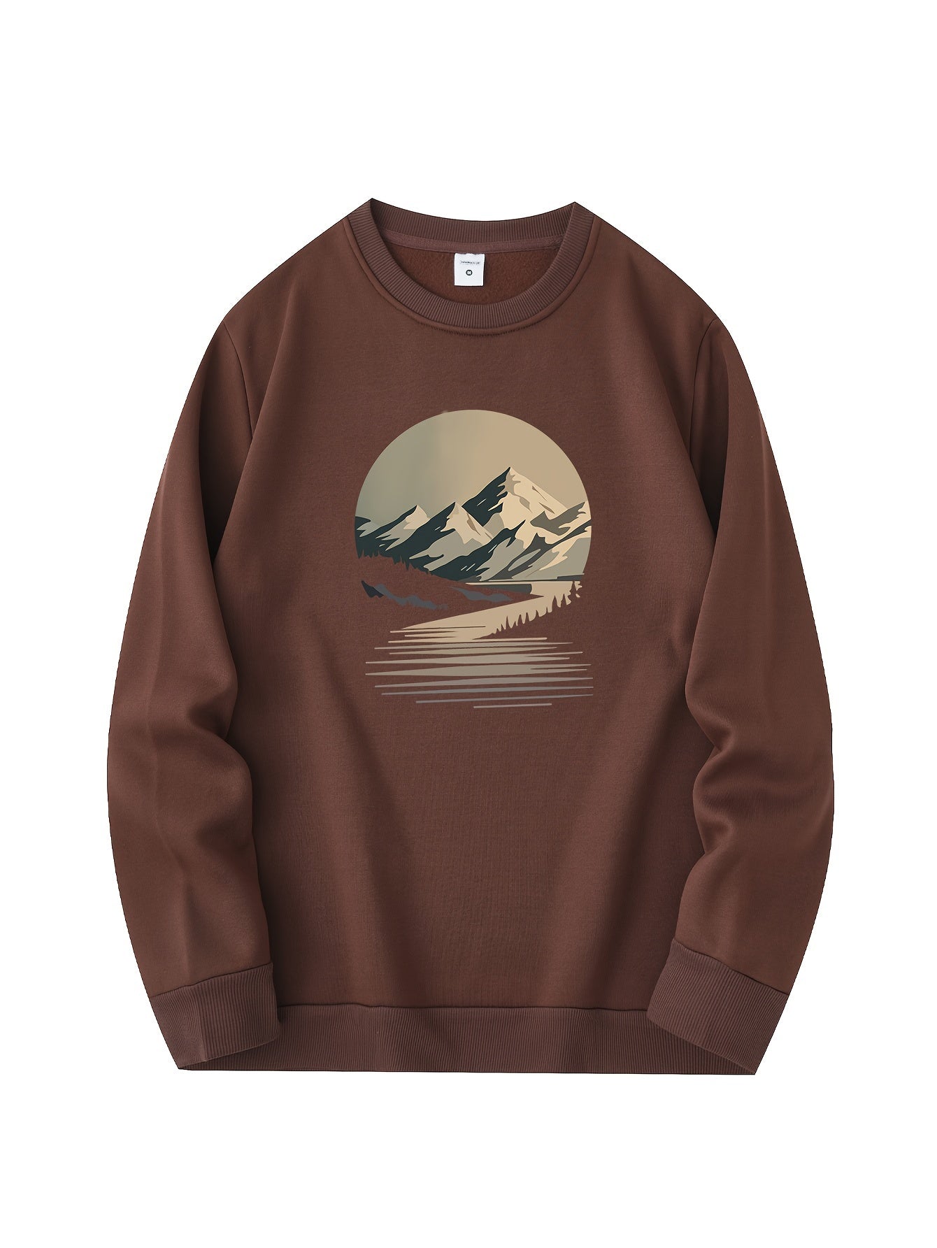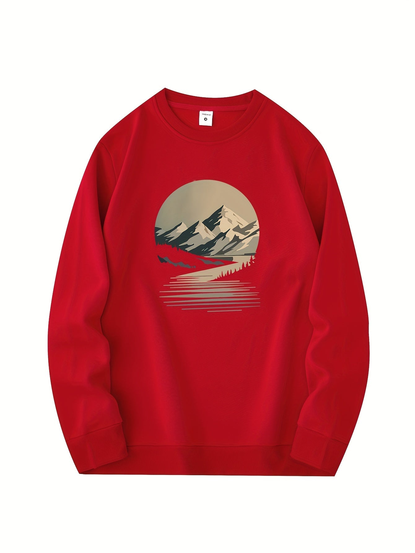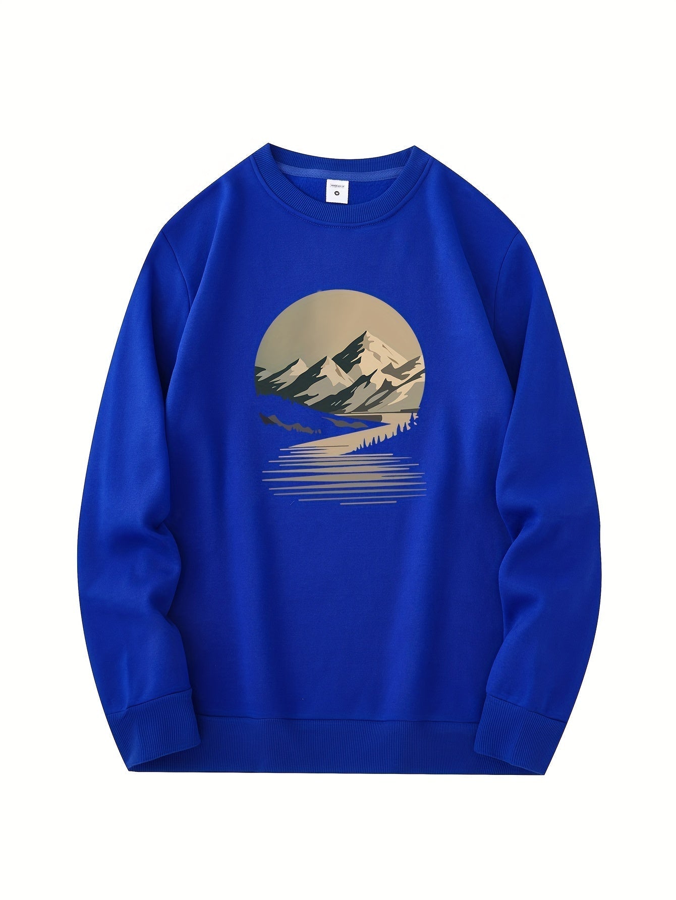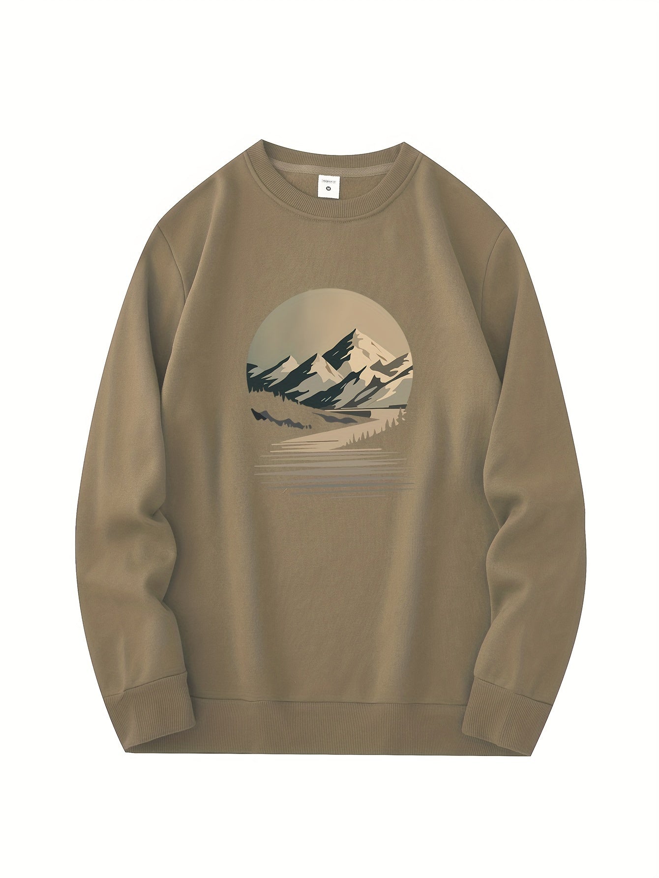 Casual Lös Tröja med Bergsmönster Tryck för Herr | Perfekt för Höst/Vinter