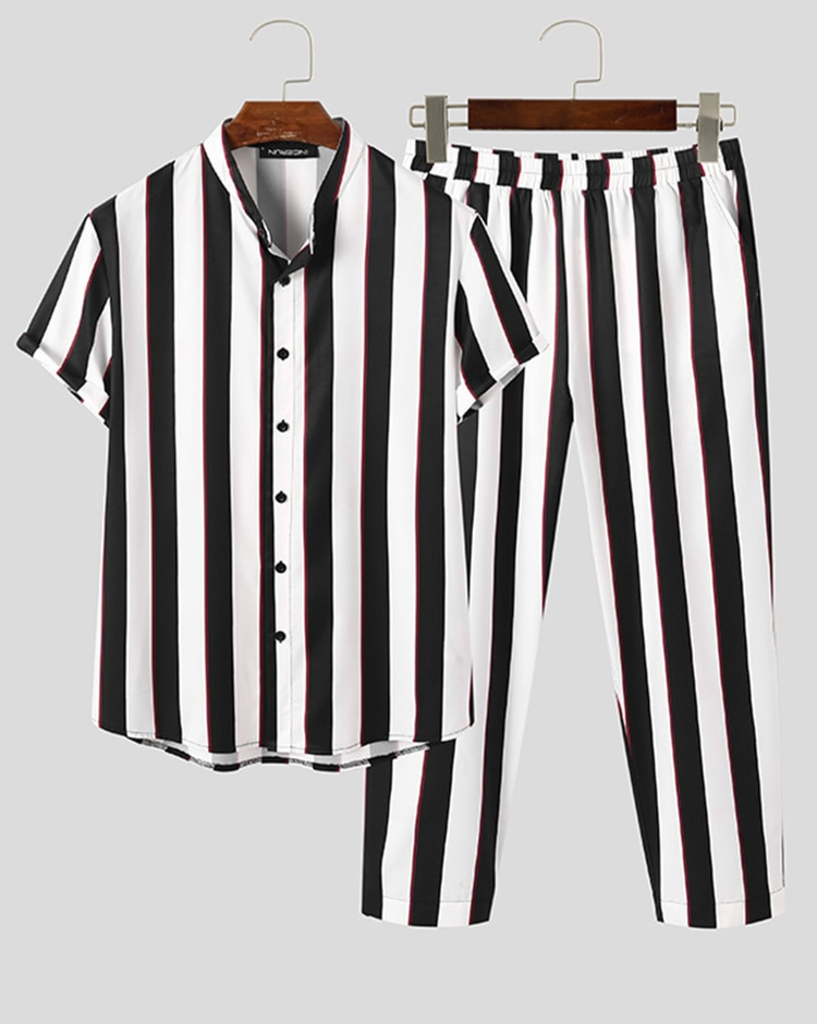 Skapa en sofistikerad look med Christoffer 2-delade setet. Tillverkat av ett lätt material som låter huden andas, är detta set stor för vårens milda temperaturer. Med en klassisk svartvit randdesign och en mångsidig blus kan du enkelt anpassa stilen för olika tillfällen.
