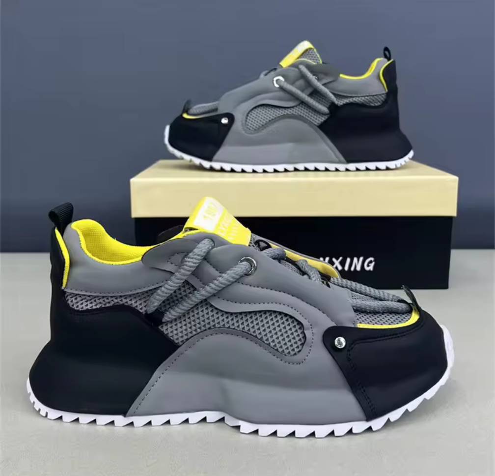 Uppgradera din look med dessa chunky sneakers som kombinerar komfort och stil på bästa sätt. Den kraftiga sulan ger inte bara ett coolt lyft, utan också stabilitet och dämpning i varje steg. Den sportiga designen med meshpartier och synliga detaljer skapar ett modernt uttryck som passar både till vardags och en aktiv livsstil. Välj mellan tre snygga färgkombinationer – grå/gul, svart/vit eller marin/vit/röd – och hitta din favorit.
