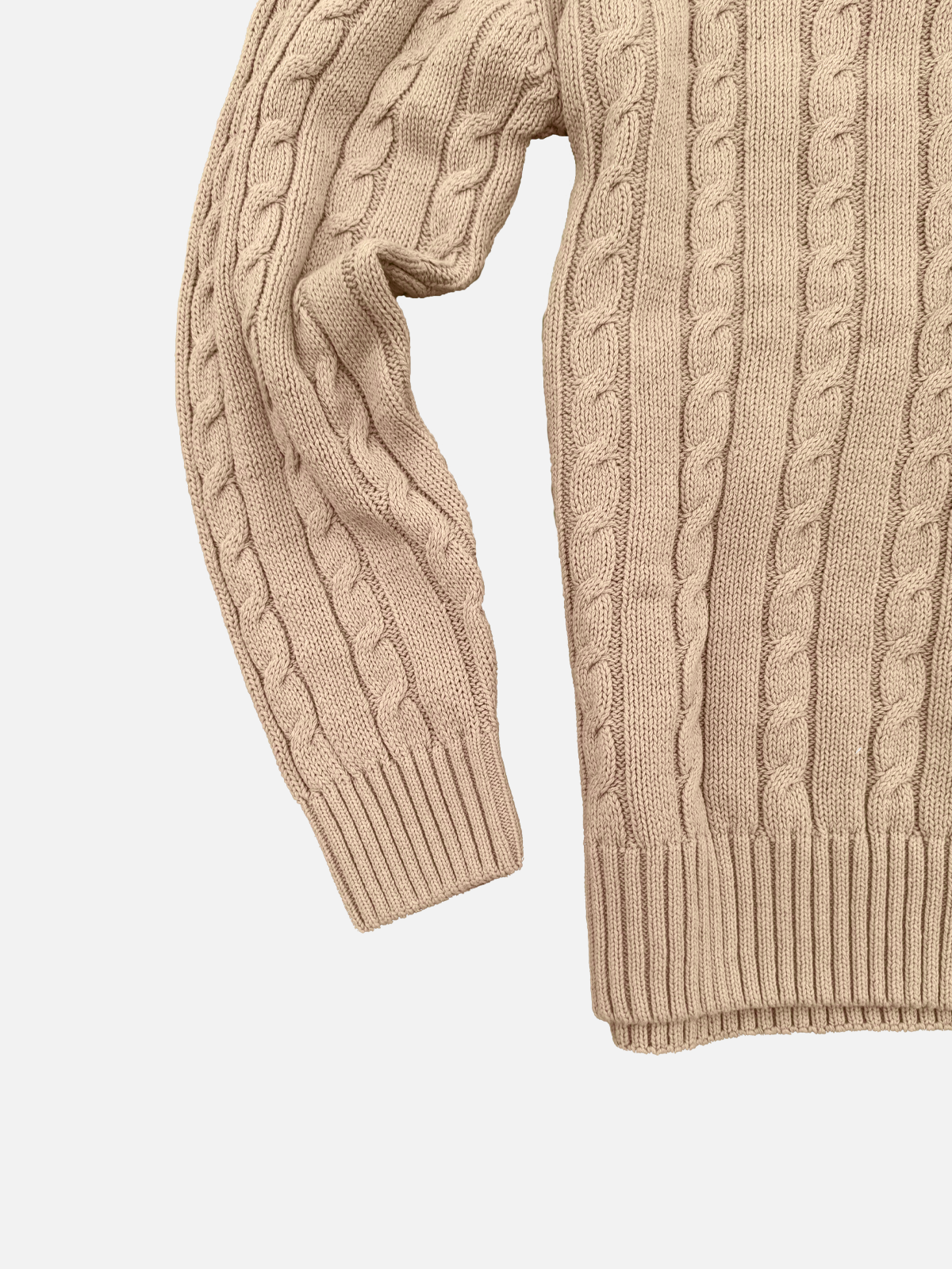 Gjør hverdagen både stilig og komfortabel med vår klassiske kabelstrikkede genser for menn. Den myke bomullskvaliteten og det tidløse flettemønsteret gir både varme og eleganse, perfekt for kjølige dager. Med ribbestrikkede detaljer rundt hals, ermer og midje, sitter genseren som et skreddersydd lag, enten du bruker den alene eller over en skjorte for en mer polert look.