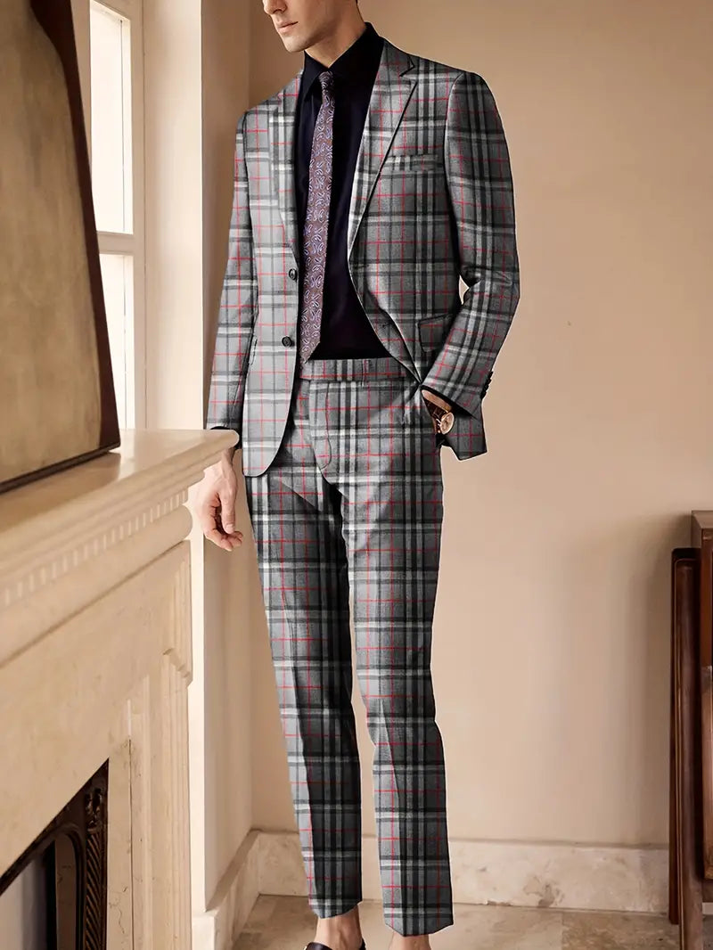 Retrorutig kavaj i tweed och kostymbyxor - Gӧsta