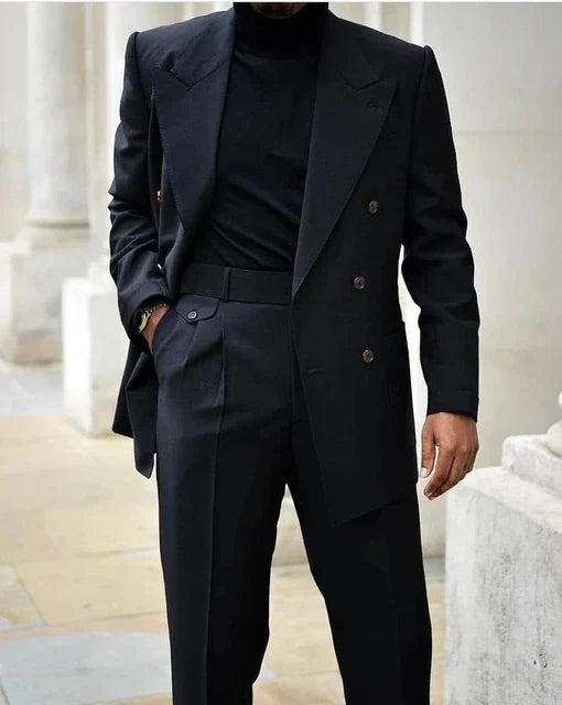 Dubbelknäppt slim-fit kappa för män [kappa+byxor] - Gottfried