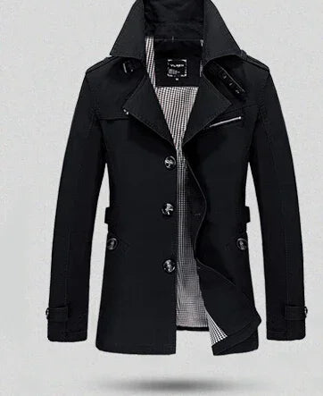 Denna herrbomullskappa kombinerar elegant design med praktiska egenskaper. Perfekt för affärstillfällen eller vardagen, erbjuder den både komfort och stil.
