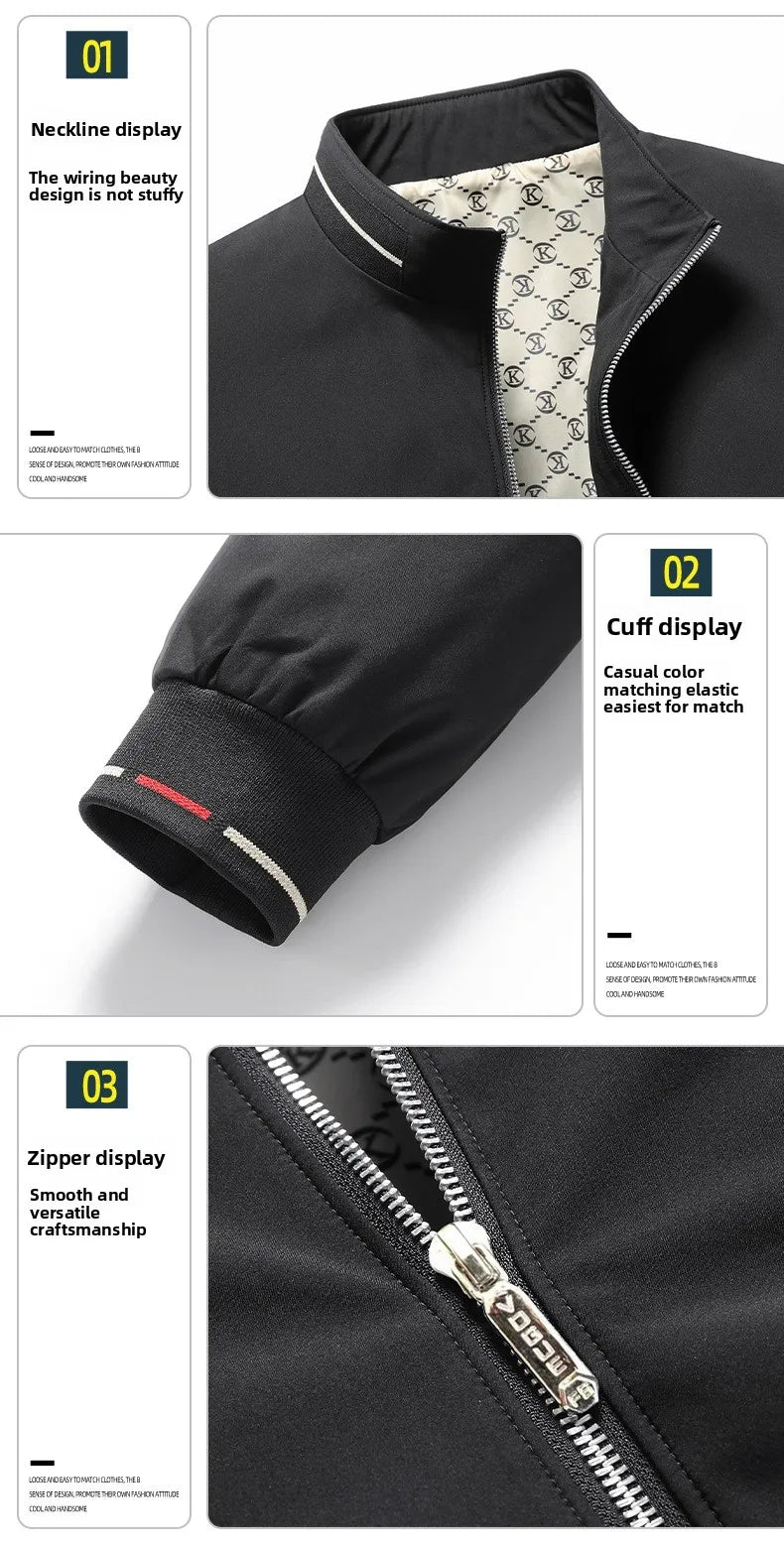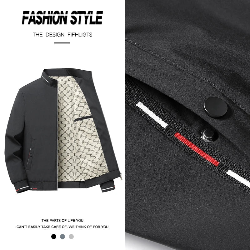 Denna stilfulla herrjacka med ståkrage är det perfekta valet för vår och höst. Den kombinerar komfort med en modern look och håller dig varm samtidigt som du ser elegant ut.