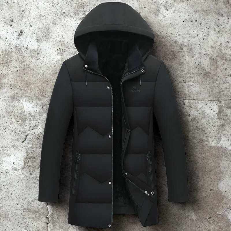 Herrjacka med huva – Vadderad – Plushy foder – Quiltad – Med dragkedjefickor