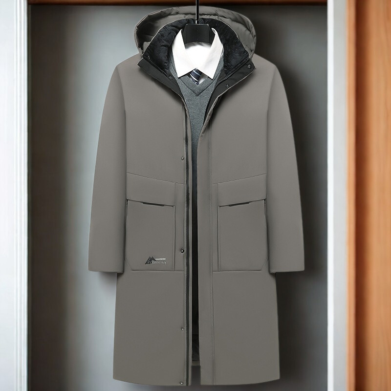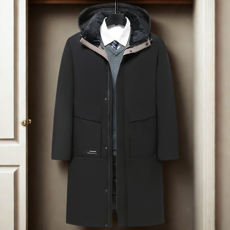 Herrrock – Normal passform – Isolerad huva – Lång modell – Vind- och vattenavvisande