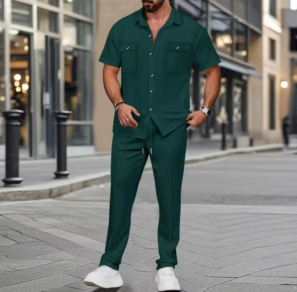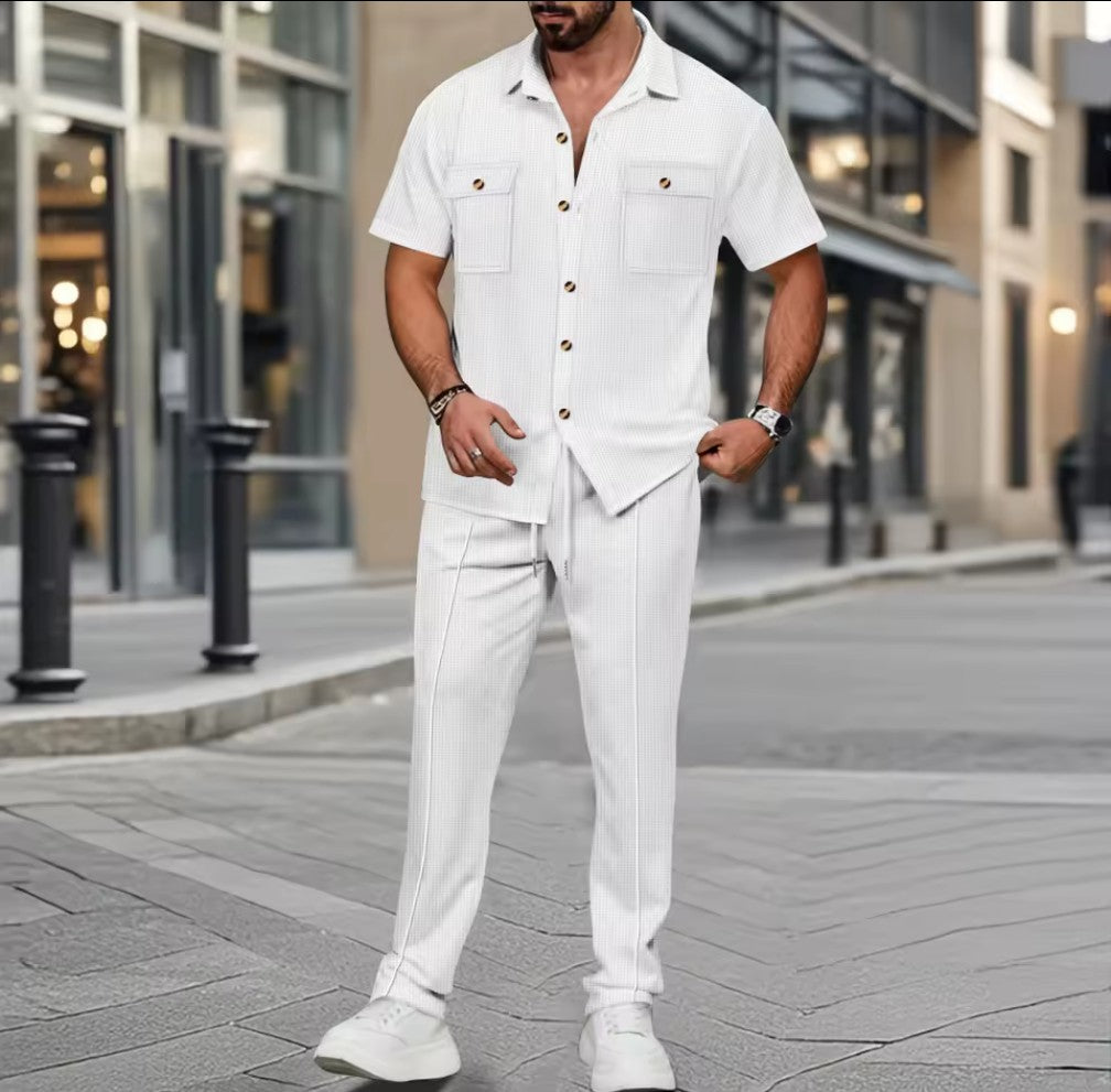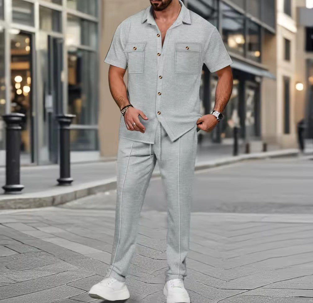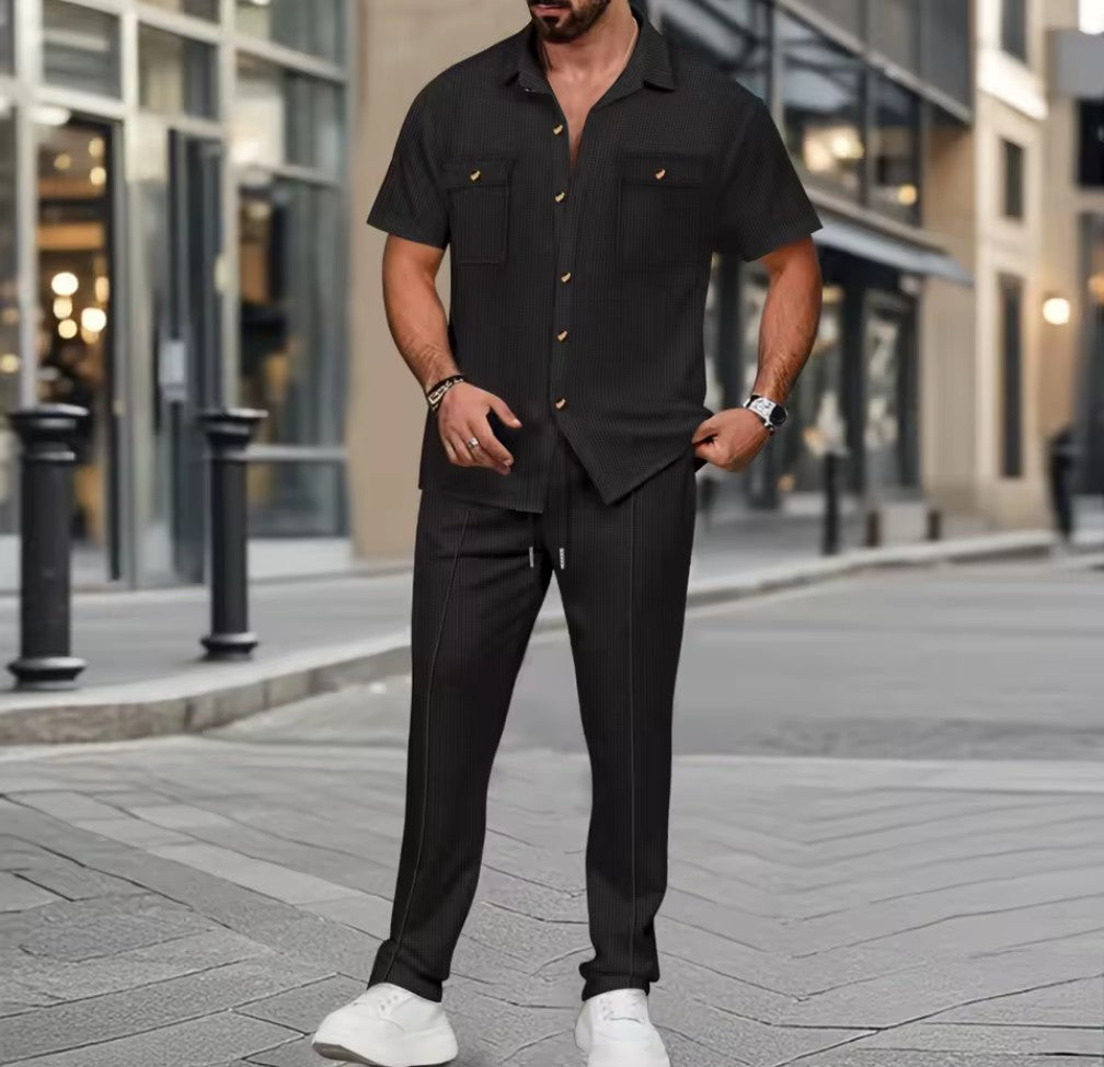 Lyft din vardagslook med det ultimata stil- och komfortpaketet – vårt tvådelade herrset "City Cool", designat för den moderna mannen som vill se välklädd ut utan att ge avkall på rörelsefrihet och bekvämlighet. Perfekt för både citypromenader, uteserveringar, semesterresor och helgbruncher.