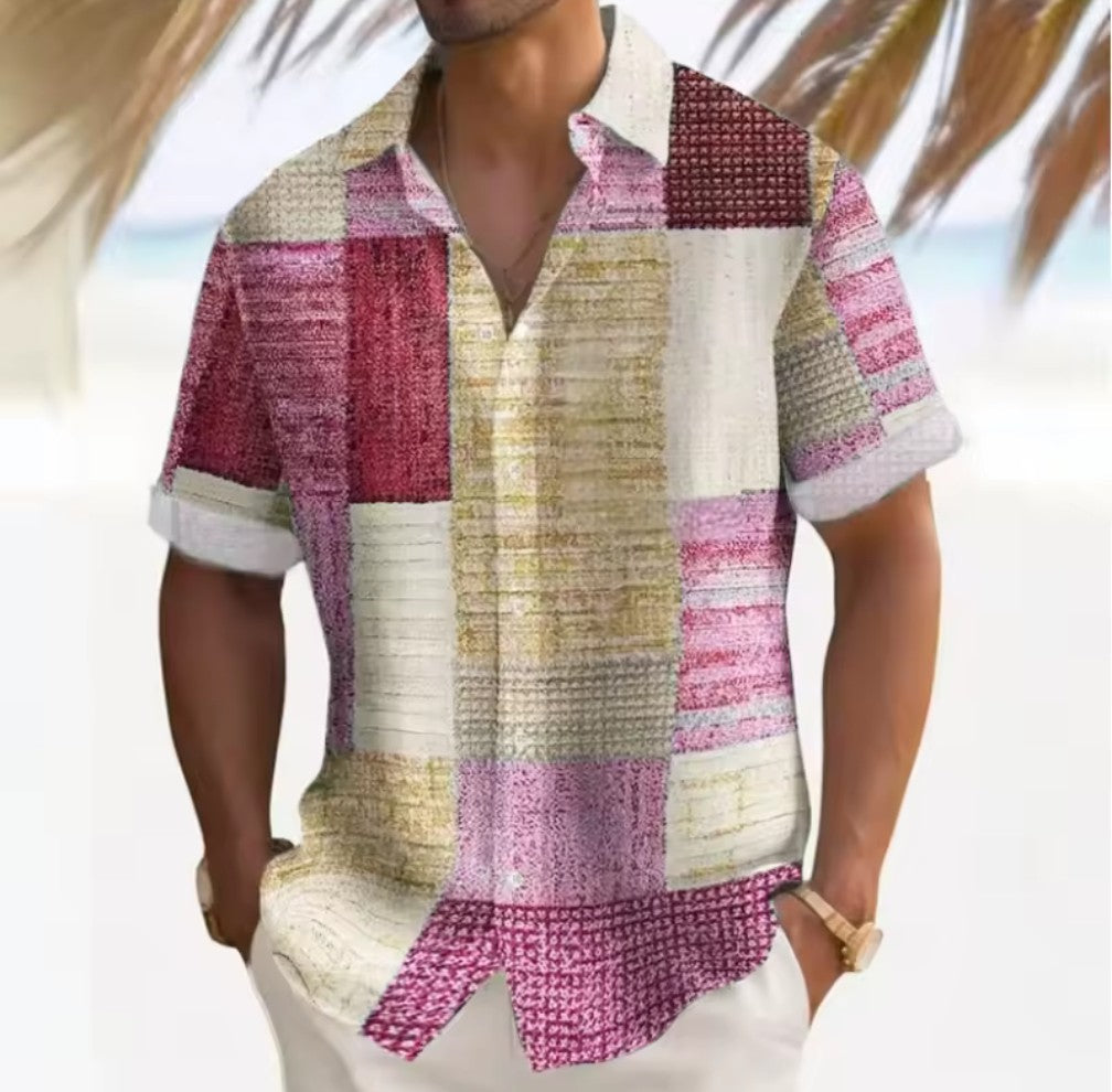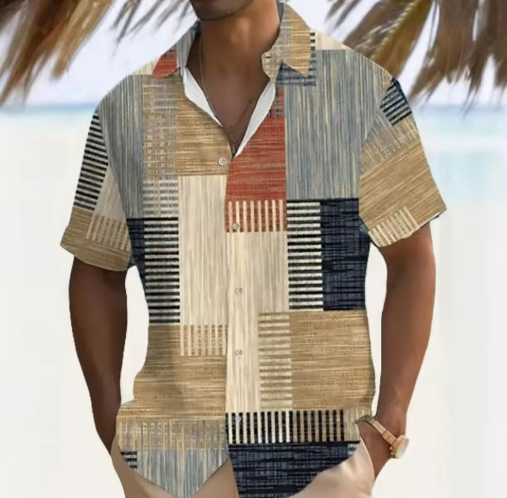 Sätt färg och karaktär på din sommargarderob med denna stilrena och lättburna herrskjorta med patchwork-inspirerat mönster. Den perfekta balansen mellan bohemisk charm, modern design och tidlös komfort – skapad för dig som vill sticka ut utan att kompromissa med stil eller bekvämlighet. Ett måste för strandpromenader, barhäng, semesterresor eller vardagslook med det lilla extra.