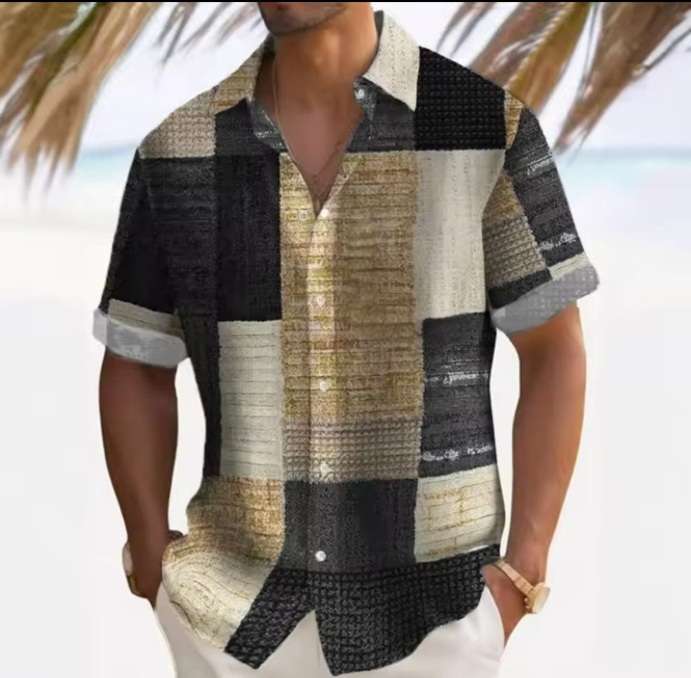 Herrskjorta Patchwork Linen Look – Sommarens statementplagg ☀️👔