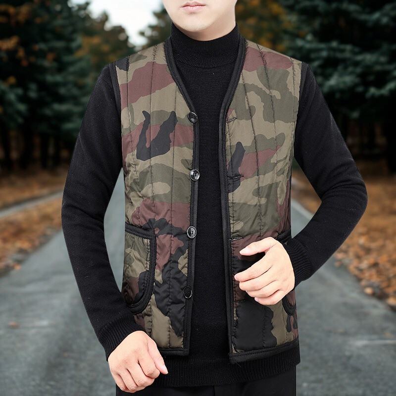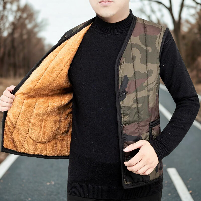 Herrväst – Lättviktsvadderad – V-ringat – Knäppning – med Fickor – Bekväm Passform
