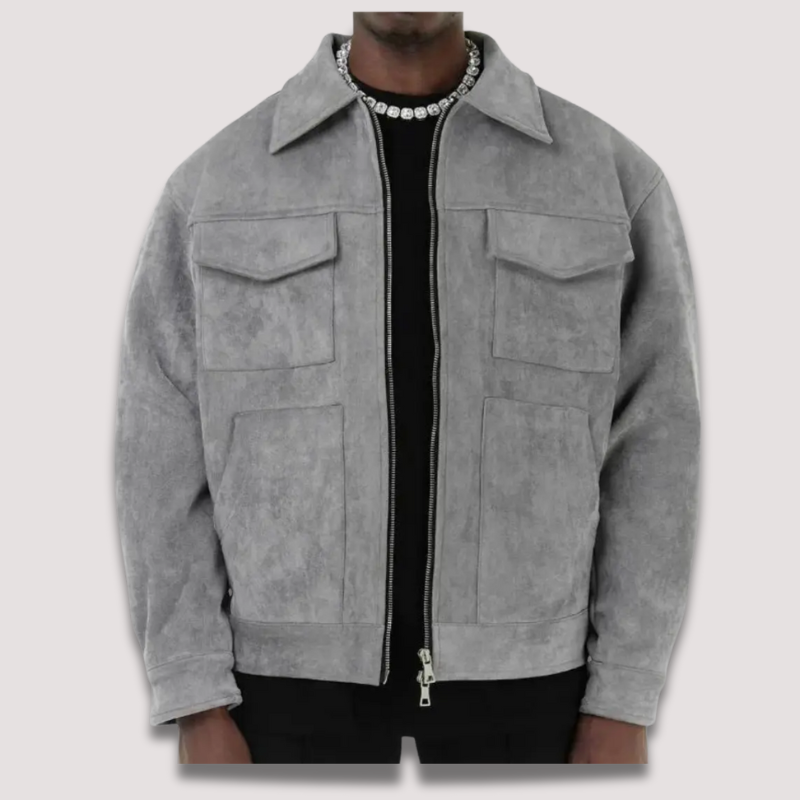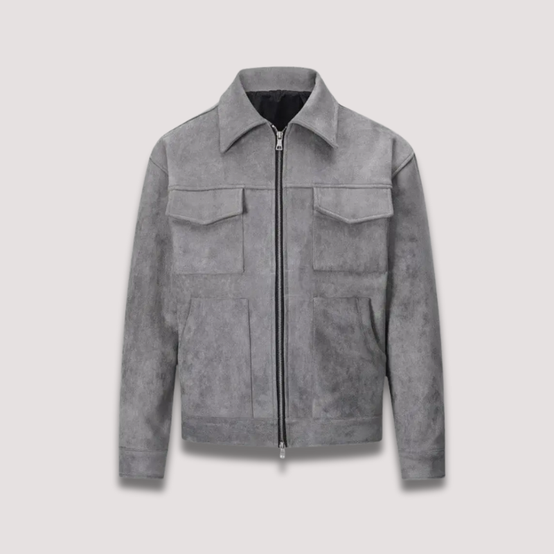 Förstärkta sömmar och behandlad mocka som motstår märken—håller jackan skarp säsong efter säsong.