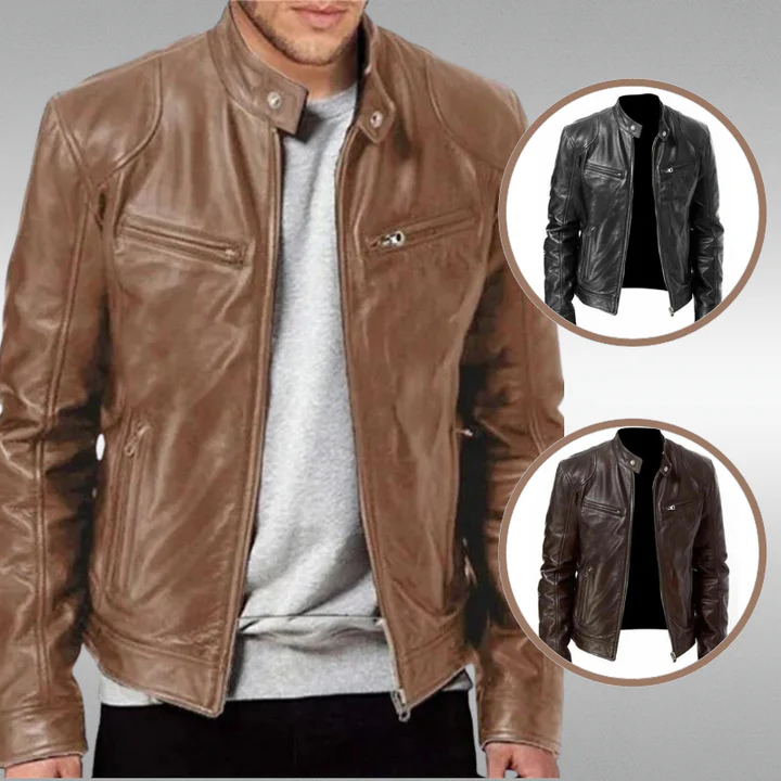 Tillverkad av nästa generations PU-skinn har den den rika texturen och den eleganta finishen hos äkta skinn, men är samtidigt lättare, mjukare och enklare att sköta. Den skräddarsydda europeiska passformen framhäver din profil, oavsett om du kör genom staden, bär den över en hoodie eller ska ut på kvällen.