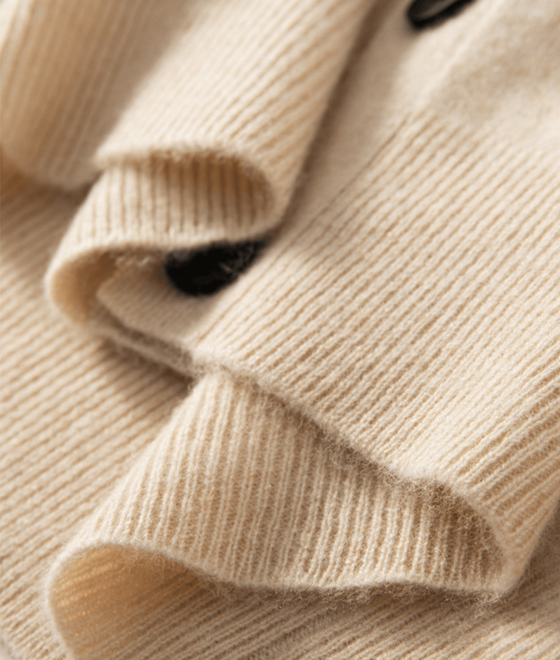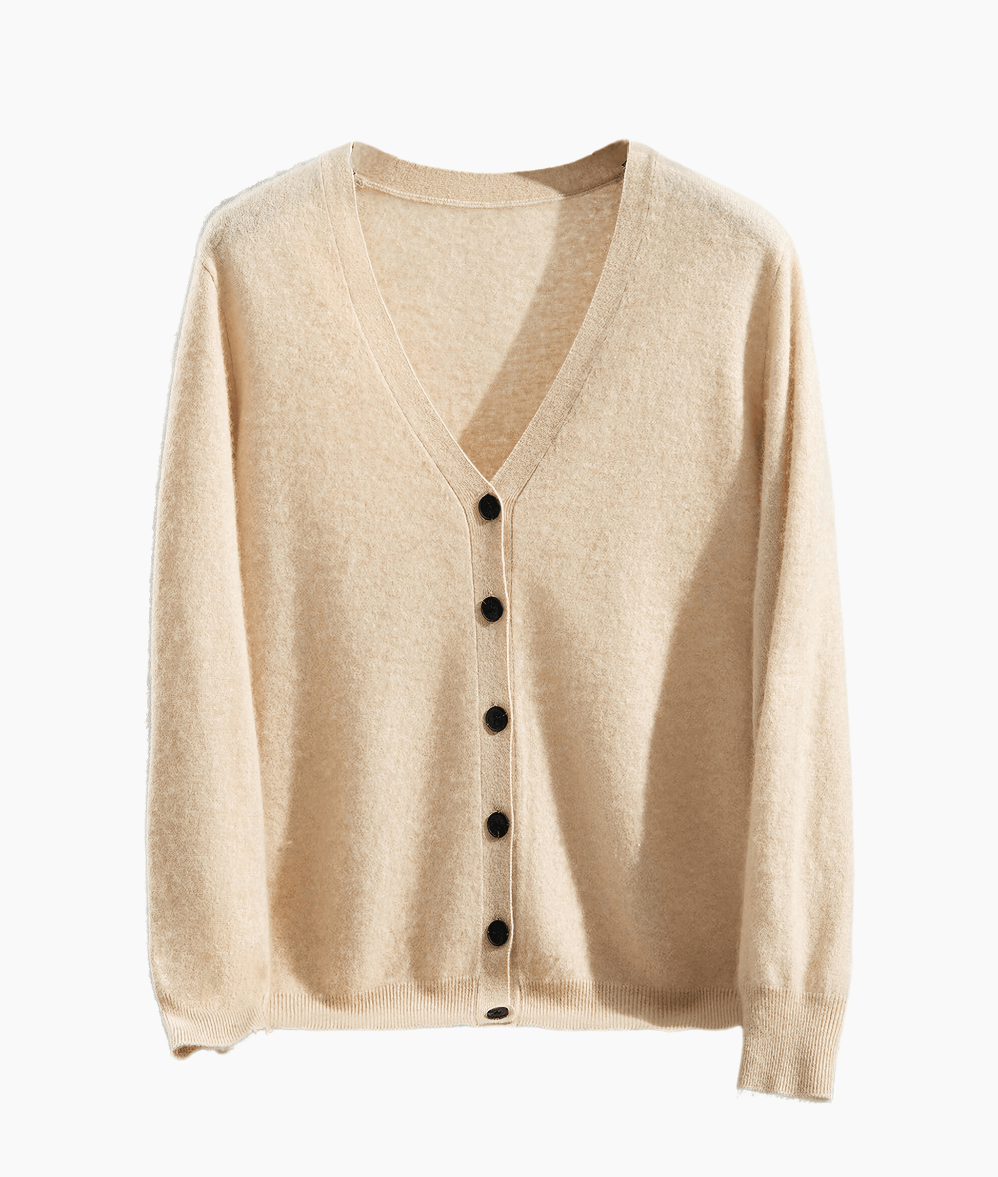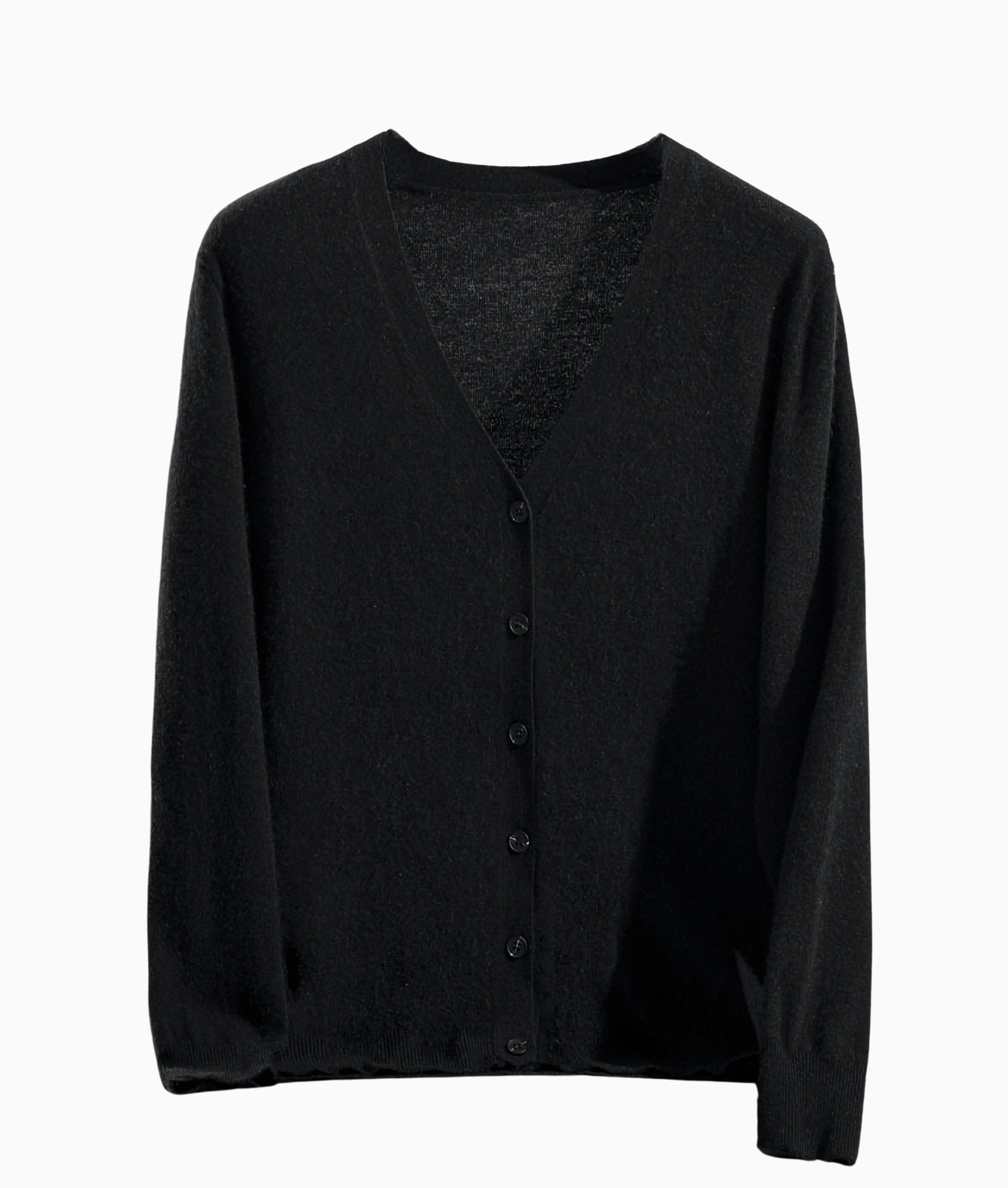 Designed with a classic V-neck and long sleeves. Made from a blend of 30-35% cashmere and 65% wool with a regular yarn structure, it offers a balanced thickness suitable for both the fall and winter seasons.