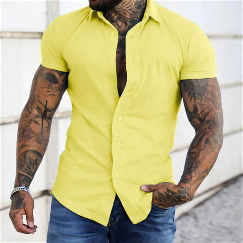 ✔️ Vacker passform: Den här kortärmade herrskjortan har en vacker passform, så att du ser bra ut var du än går.
