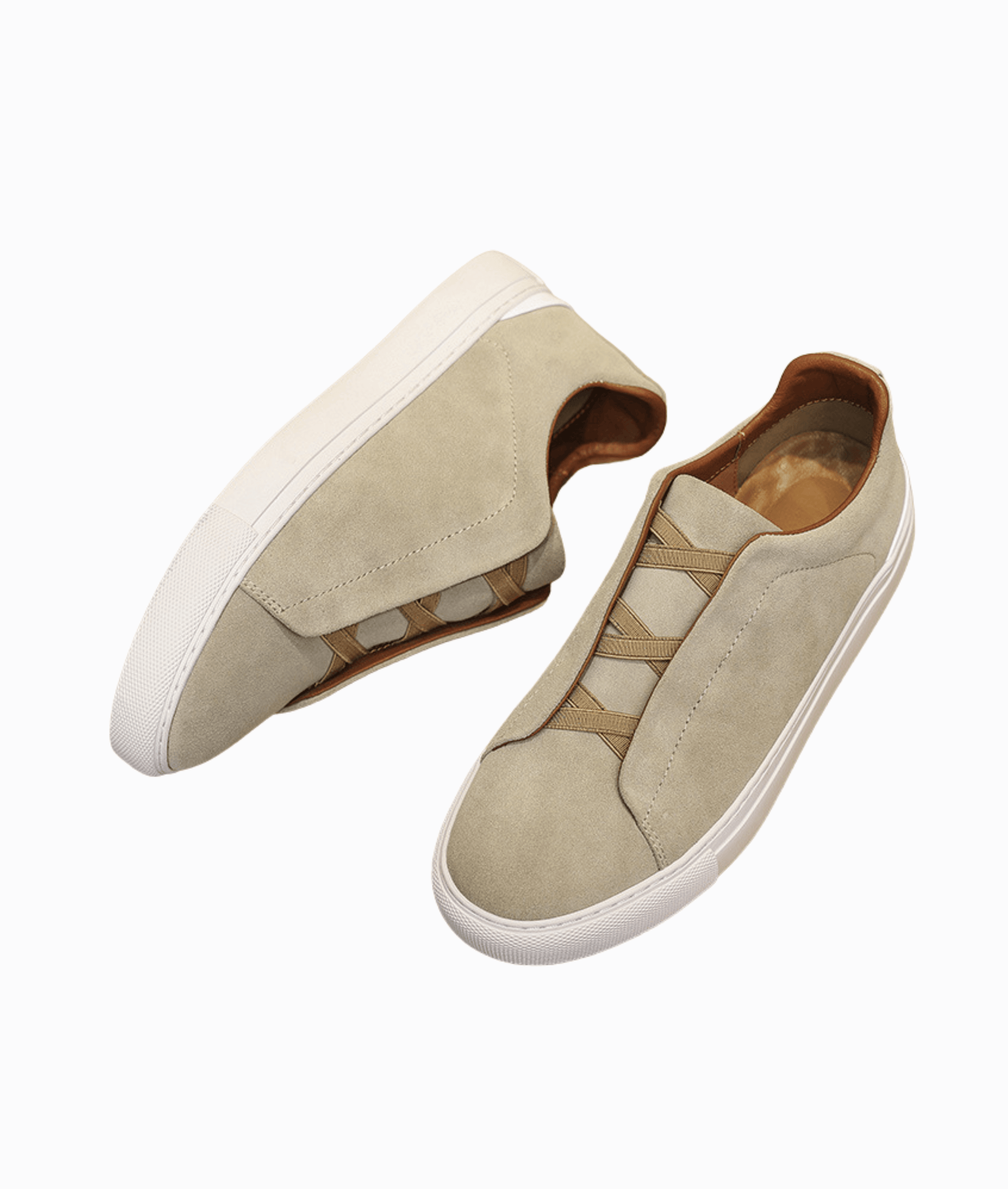 Men's sneakers in high-quality leather with a classic design and a round toe. The solid-colored upper and low shaft height provide a stylish and comfortable fit for all seasons. The shoe has a flat rubber sole that offers good grip and comfort, perfect for everyday use