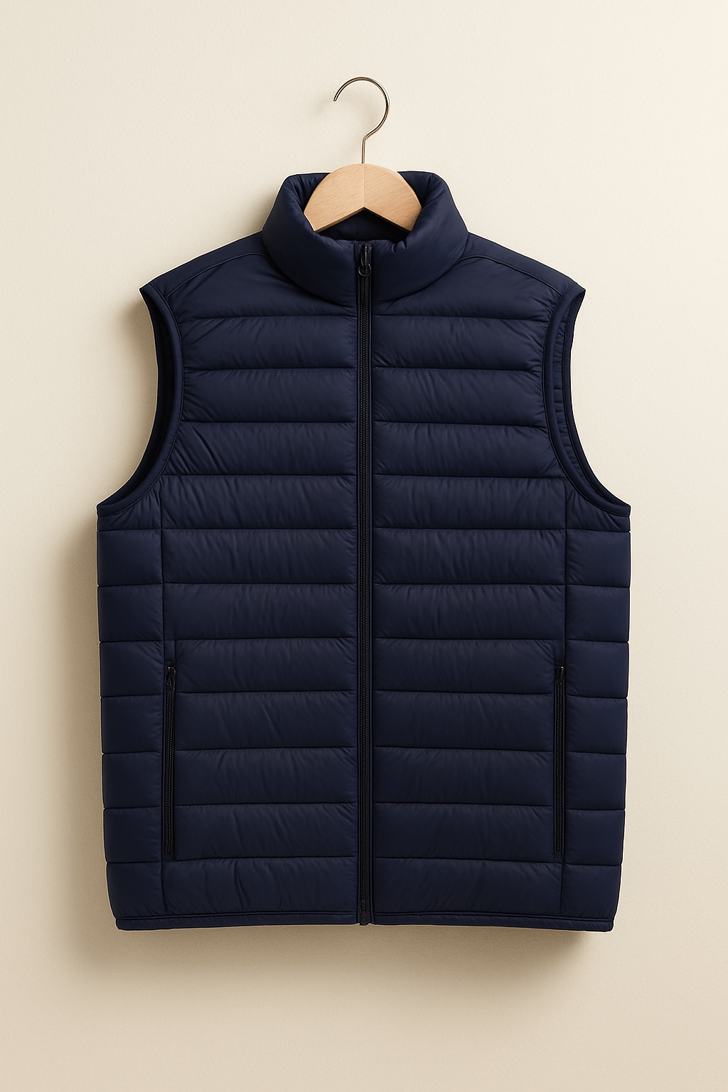 Den ärmlösa quiltade västen erbjuder en perfekt kombination av funktionalitet och modern design. Den är lätt och andas, idealisk för lager-på-lager-stil under övergångsperioder och ger behaglig värme utan att kännas klumpig.