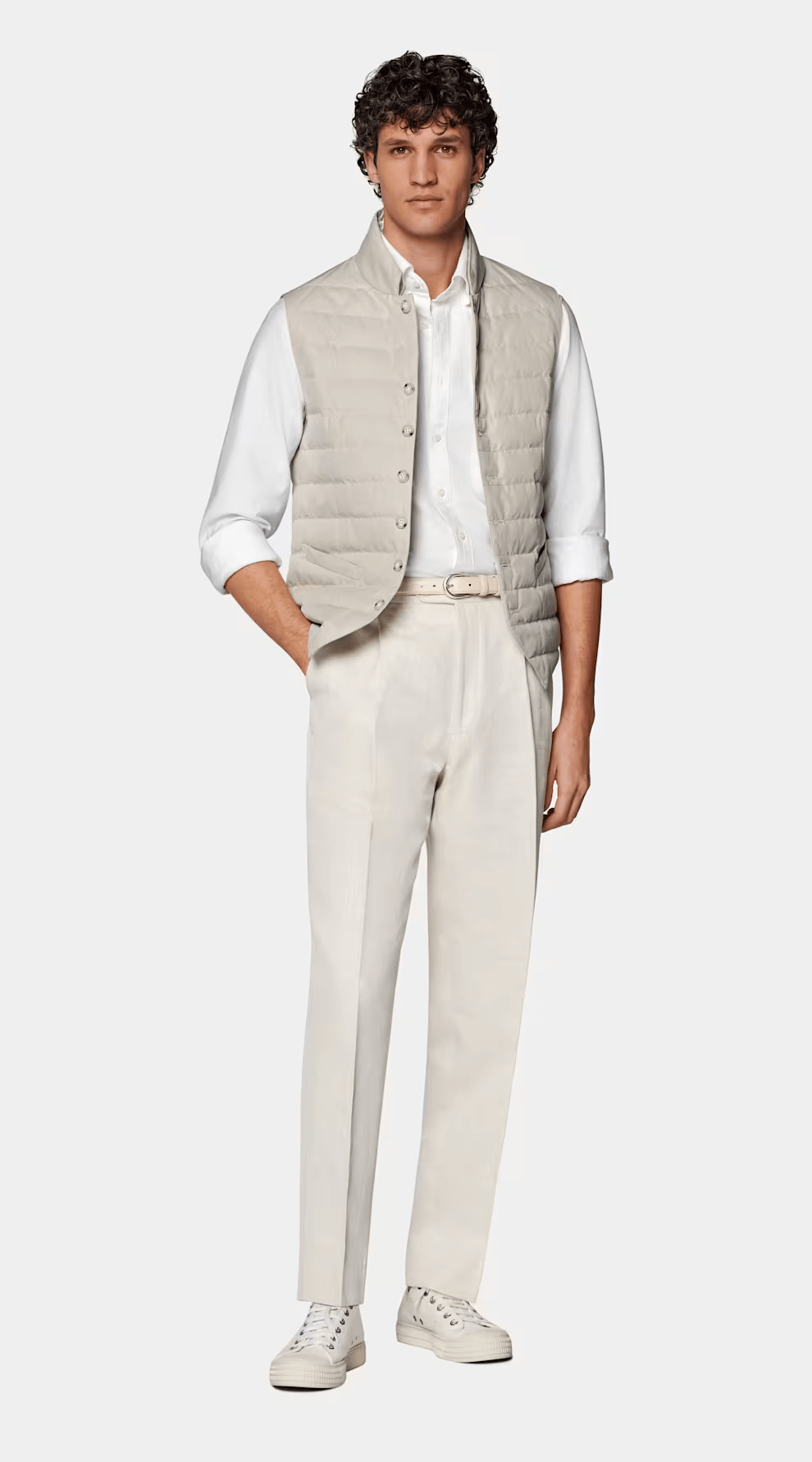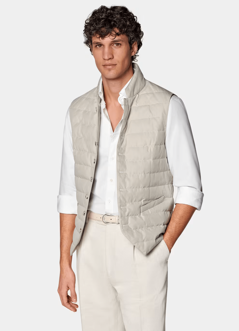 Upptäck vår sandfärgade kroppsvärmare för män – den perfekta accessoaren för stilmedvetna herrar som värdesätter komfort och elegans. Oavsett om det är på kontoret, under promenaden eller på svala kvällar – denna kroppsvärmare ger din outfit det där lilla extra och håller dig behagligt varm.