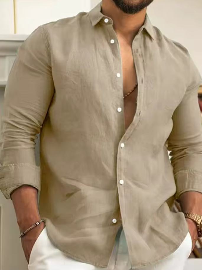 Linneskjorta för Herr – Lätt, Stilren & Perfekt för Värmen /Beige