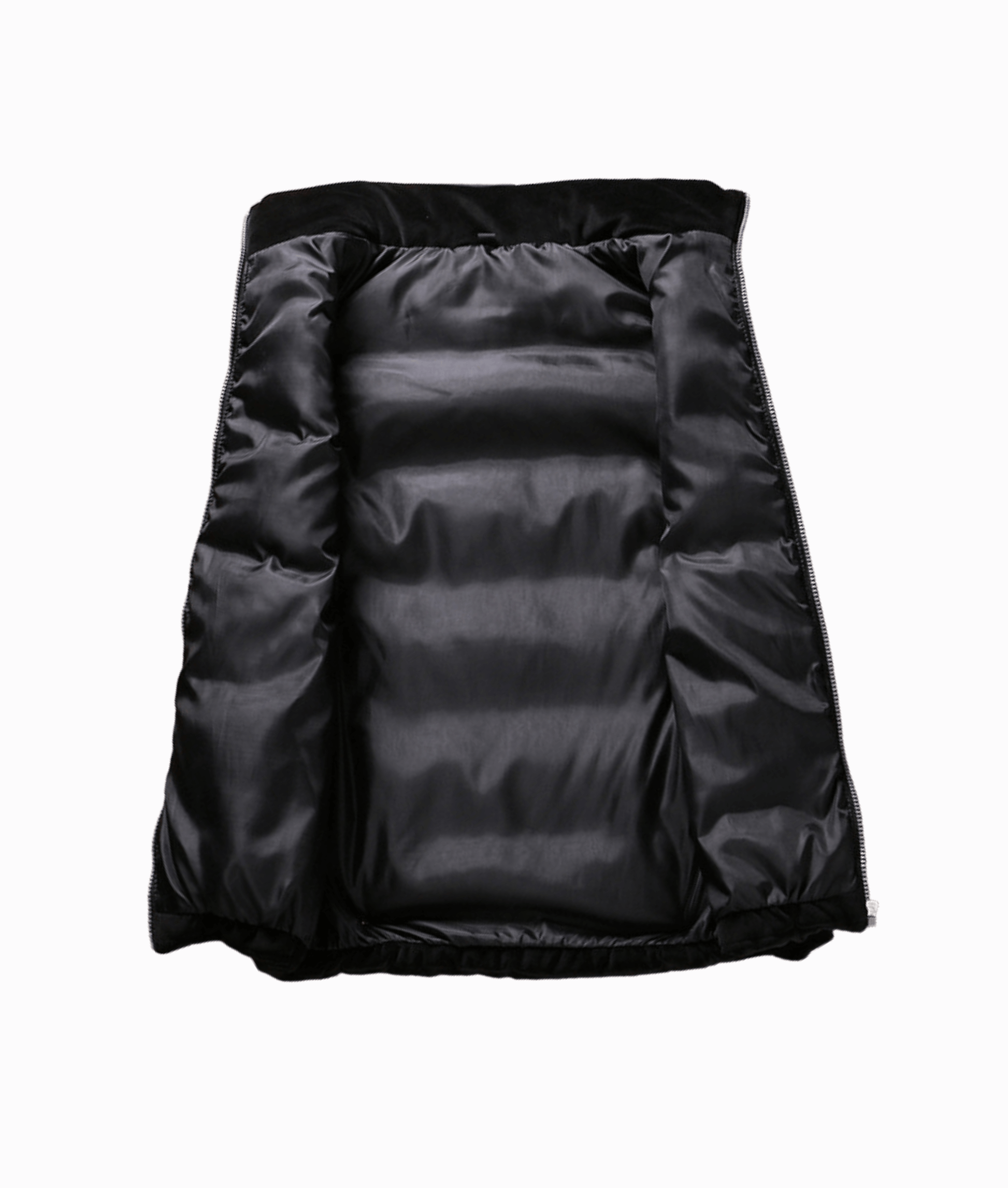 The vest has a relaxed fit with a zippered front and a classic stand-up collar, perfect for keeping you warm during spring and fall. The vest's outer material consists of a polyester fiber blend, which provides both durability and comfort.