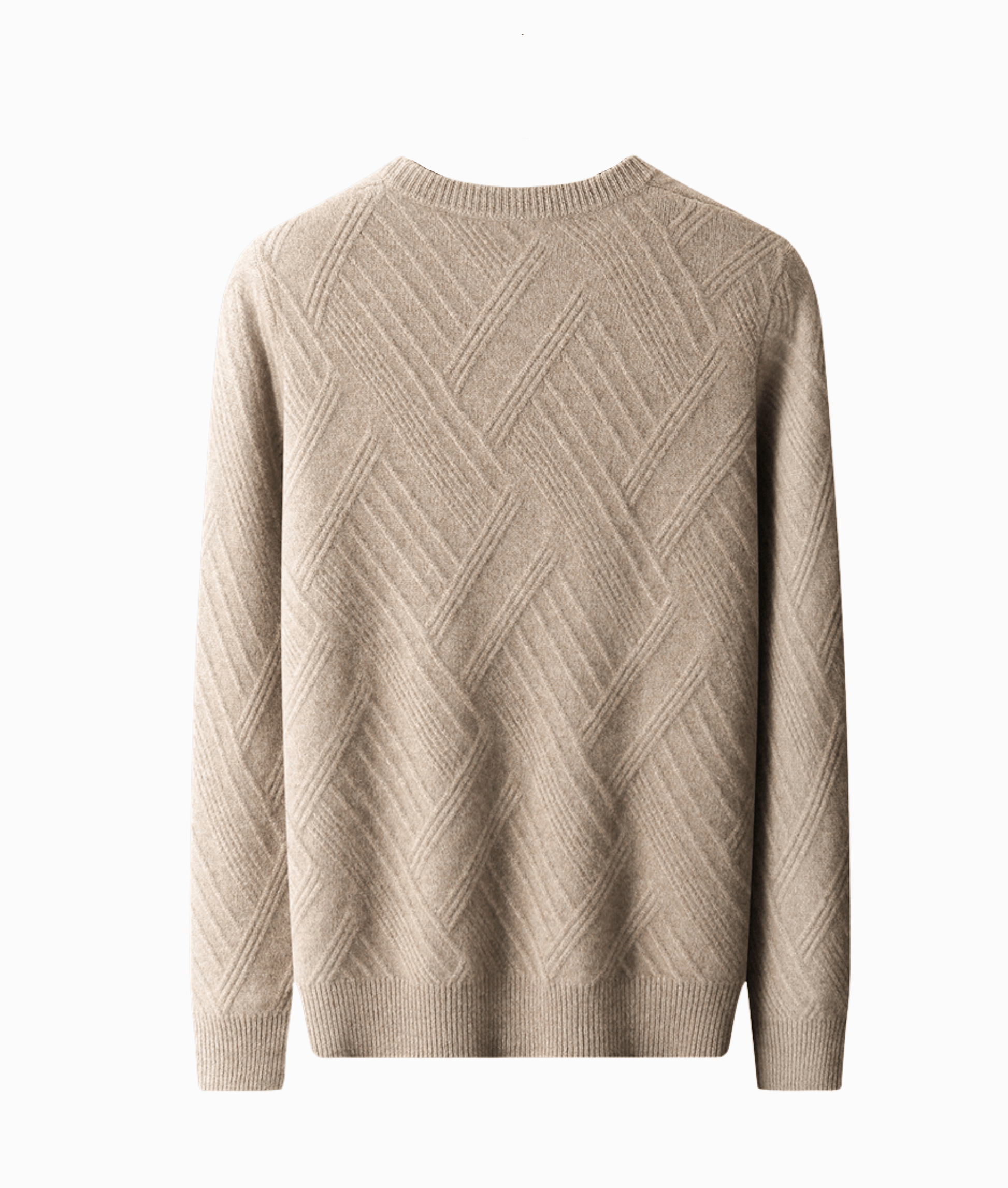 The sweater has a loose fit with long sleeves, perfect for a relaxed and comfortable everyday style.