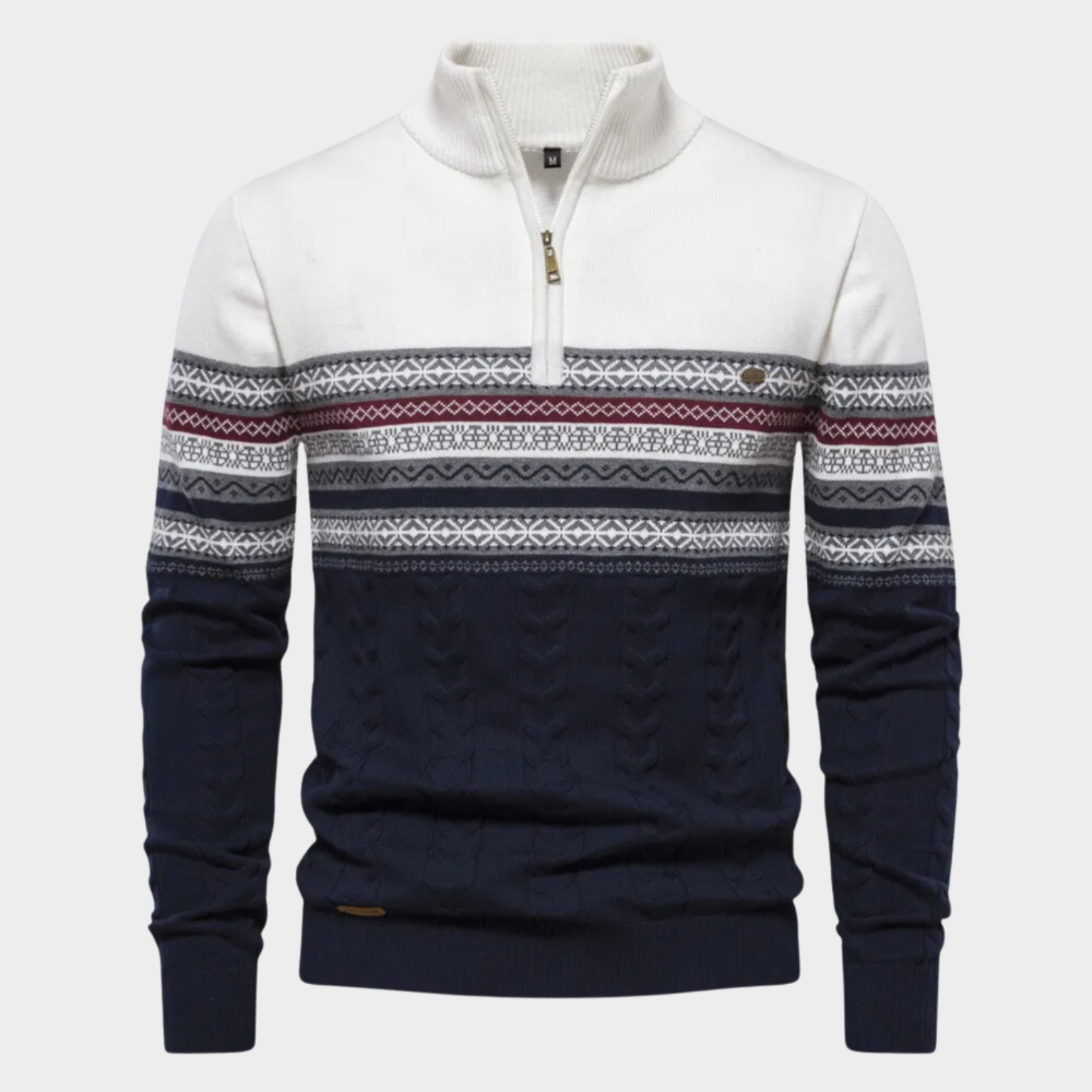 Nordisk Mönstrad Halvdragkedja Polokrage Tröja För Herr | Perfekt för Höst/Vinter