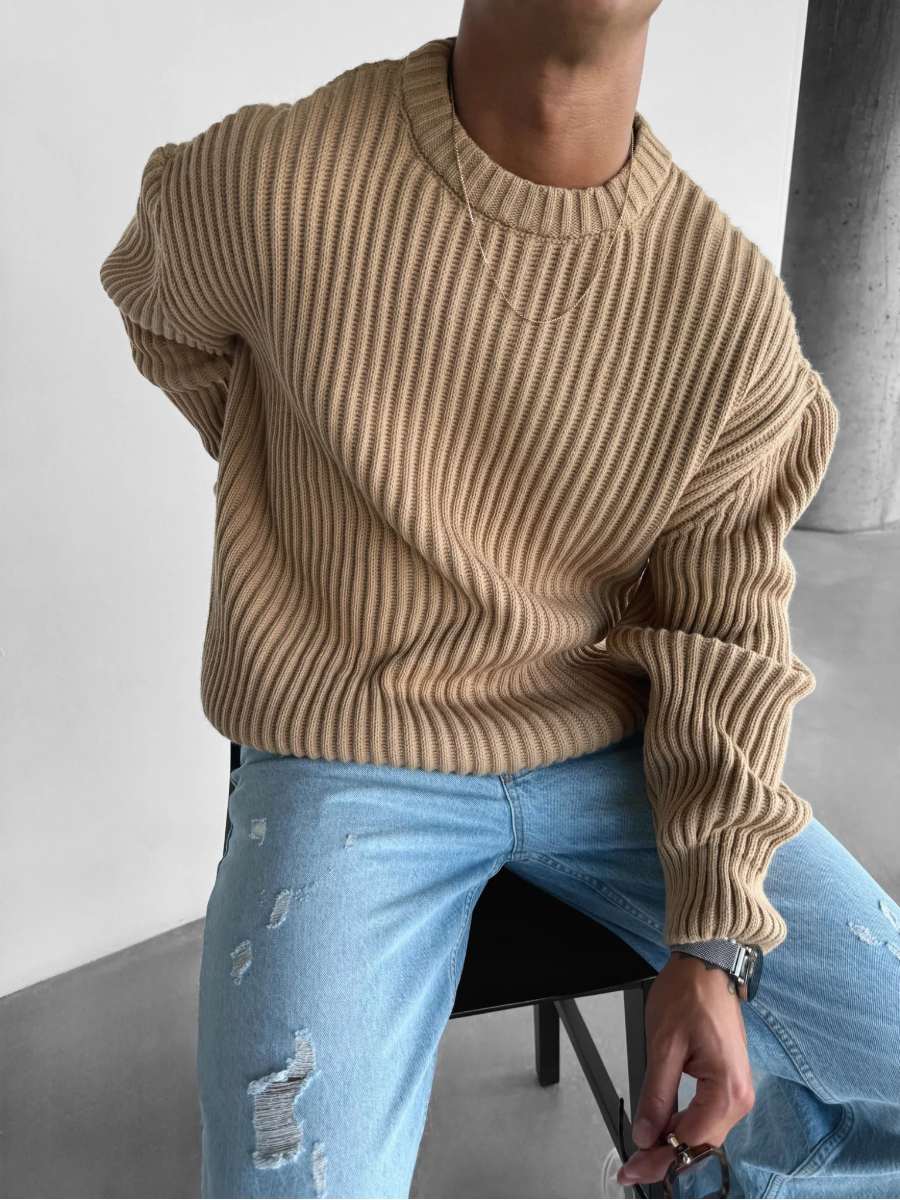 Oversize Rundhalsad Brun Tröja För Herr | Ideal för Hösten/Vintern