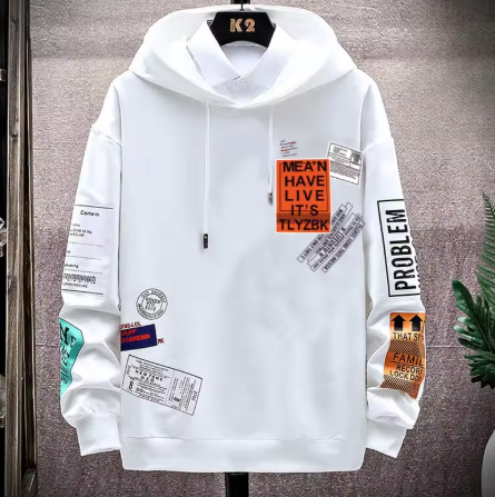 Den här hoodien är något utöver det vanliga! Med massor av snygga detaljer som patches, tryck och skrift blir den en riktig eye-catcher. Perfekt för dig som vill ha en streetwear-look med attityd. Den avslappnade passformen och den stilrena vita färgen gör den enkel att matcha – lika snygg till jeans som till shorts.