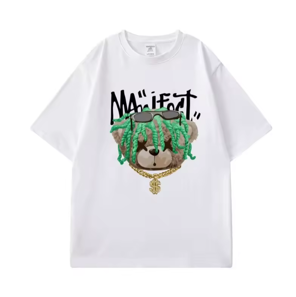 Denna oversized T-shirt kombinerar lekfull design med en rebellisk touch. Med en graffiti-inspirerad nalle, neonfärgade detaljer och edgy text skapar den en unik och urban look. Perfekt för dig som vill sticka ut och visa din attityd!