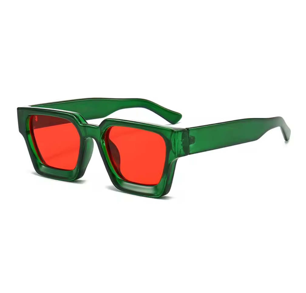 Uppgradera din look med våra retroinspirerade solglasögon i rektangulär design – perfekta för dig som vågar sticka ut! Dessa trendiga solbrillor kommer i en kraftig båge och färgstarka linser som garanterat drar blickarna till sig. Välj mellan helgrönt för en clean look, grön båge med röda linser för den modige, eller svart med lila linser för en edgy touch. Oavsett stil får du solglasögon som kombinerar cool estetik med komfort – idealiska för både festivaler, stadspromenader och strandhäng.