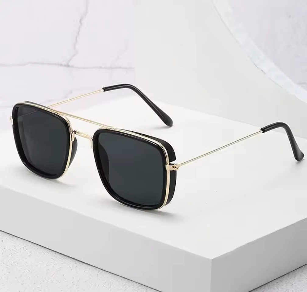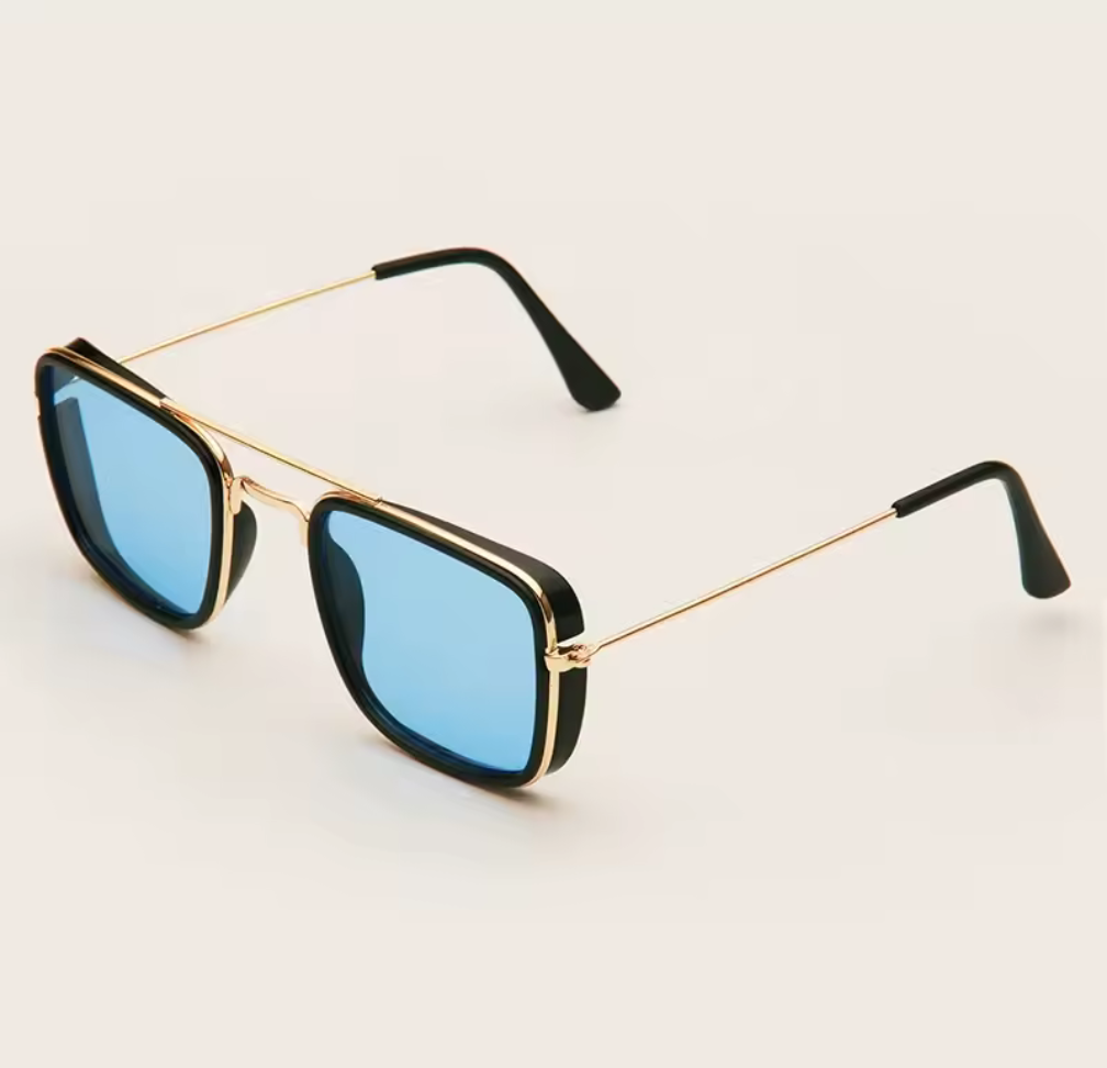 Svart/Guld med blå linser – trendigt och fräscht